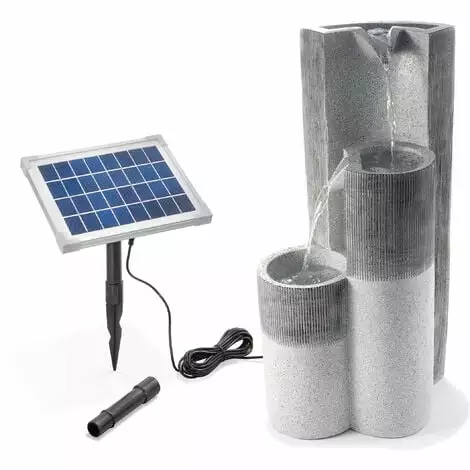 La pompe, qui fonctionne Ă lÂĂ©nergie solaire moderne, vous permet dÂinstaller la fontaine solaire de jardin Smart Fountain nÂimporte oĂč dans le jardin. Vous nÂavez pas Ă vous soucier dÂune Ă©ventuelle connexion Ă©lectrique. Avec ses trois stĂšles en gris frais, la fontaine solaire de jardin Smart Fountain apporte lÂĂ©nergie en mouvement de lÂeau dans votre jardin. LÂeau coule comme une cascade de la stĂšle supĂ©rieure sur les deux suivantes et est pompĂ©e Ă partir de la stĂšle infĂ©rieure.