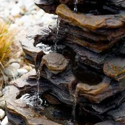 La fontaine dĂ©corative en cascade solaire Rock Fountain est un vĂ©ritable bijou et sÂintĂšgre dans chaque jardin avec son naturel. Il vous suffit de lÂinstaller, de la remplir dÂeau distillĂ©e ou dÂeau de pluie douce et filtrĂ©e et de connecter le panneau solaire : LÂeau commence dĂ©jĂ Ă bouillonner. QuÂattendez-vous ?