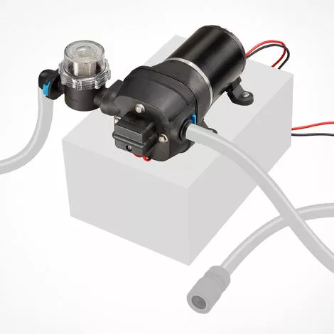 Une batterie de taille correspondante est importante lors du fonctionnement de cette pompe Ă membrane. Celle-ci ne doit pas descendre en dessous de 12 V / 50 Ah mĂȘme avec un fonctionnement sporadique de la pompe. Il est Ă©galement important de sÂassurer que la ligne dÂalimentation a un fusible et une section transversale appropriĂ©s.