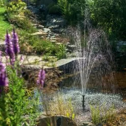 Le boîtier de batterie dispose de 2 sorties commutables. La pompe est connectée à la sortie 18 V. Cette sortie peut être utilisée en mode minuterie. Cela signifie que la pompe est mise en marche toutes les heures pendant environ 10 minutes. Un aérateur de bassin, une pompe ou un éclairage peut être connecté à une autre sortie 6V commutable. Pompe fermée sans balais de haute qualité avec protection contre la marche à sec et contre les surcharges et éclairage LED longue durée. Différentes fontaines peuvent être générées avec les 4 tuyaux montants inclus et 2 arroseurs différents (fontaine à 3 étages et cloche à eau). Prêt à brancher, configuré en quelques minutes.