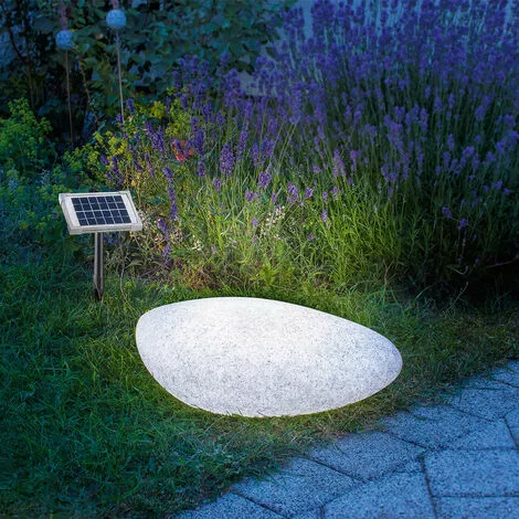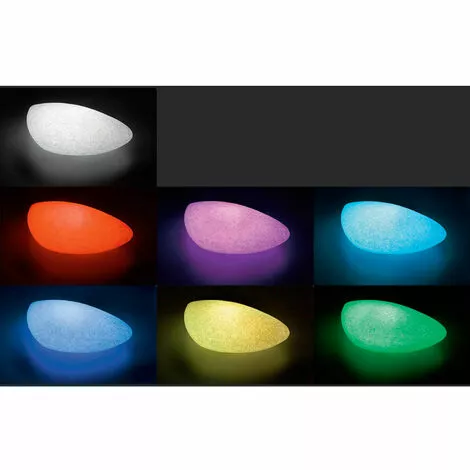La version en plastique robuste en PE peut être utilisée toute l’année à l’extérieur. Un module solaire puissant de 2 Wc avec un câble de 5 m charge complètement la batterie Li-Fe intégrée dans les 6 heures d’ensoleillement. Le module solaire peut être aligné de manière optimale avec le soleil à l’aide d’un piquet de sol avec une rotule. Lorsque la batterie est complètement chargée, la pierre s’allume pendant 20 heures. La combinaison puissante vous donne une très bonne fonction même pendant les mois d’hiver. La pierre lumineuse contient un total de 8 couleurs claires et peut être utilisée en lumière continue ou en lumière alternée pendant une minute.