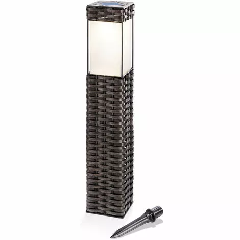 Le nom Ă lui seul indique clairement quel Ă©tait lÂobjectif de conception : Ce lampadaire solaire de 50 cm de haut impressionne par son aspect rotin intemporel. Cela va donc parfaitement – mais pas seulement – avec des meubles de jardin tissĂ©s.