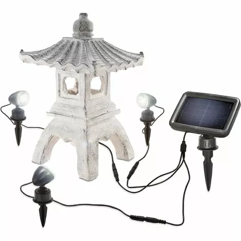 CombinĂ© avec notre Solarspot Trio Professional, une symphonie unique de style architectural asiatique traditionnel avec des effets de lumiĂšre impressionnants est créée dans lÂobscuritĂ©. La lumiĂšre blanche froide et brillante souligne particuliĂšrement les contours et laisse la pagode briller dans votre jardin.
