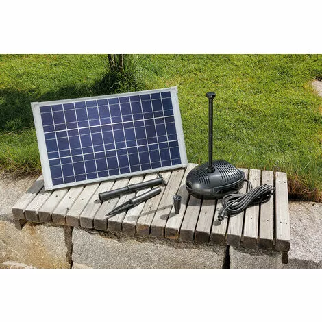 DĂšs que le soleil brille sur le module solaire, la pompe commence Ă fonctionner et vous offre un jeu dÂeau gratuit. SystĂšme prĂȘt Ă brancher avec pompe sans balais de haute qualitĂ©, avec protection contre la marche Ă sec et grand boĂźtier pour une bonne stabilitĂ© dans le bassin de jardin. Le dĂ©bit de la pompe est rĂ©glable et diffĂ©rentes fontaines peuvent ĂȘtre gĂ©nĂ©rĂ©es avec les 4 tuyaux montants inclus et 2 arroseurs diffĂ©rents (fontaine Ă 3 étages et cloche Ă eau). PrĂȘt Ă brancher, installation en quelques minutes !