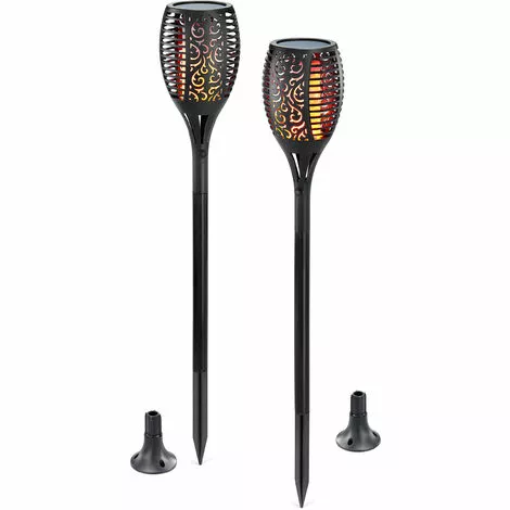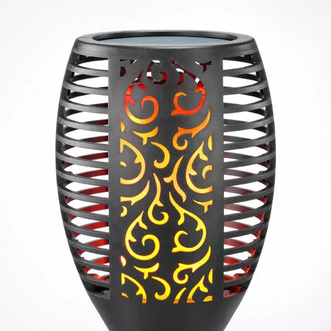 Ces torches solaires imitent une flamme rĂ©aliste, gĂ©nĂ©rĂ©e par 96 LED jaunes / orange. GrĂące au fonctionnement solaire sans fil, vous nÂavez besoin que dÂun endroit ensoleillĂ© pour le positionnement ! Vous pouvez la placer en toute sĂ©curitĂ© entre des buissons dans le sol ou la fixer Ă un mur Ă lÂaide de la plaque de montage fournie.